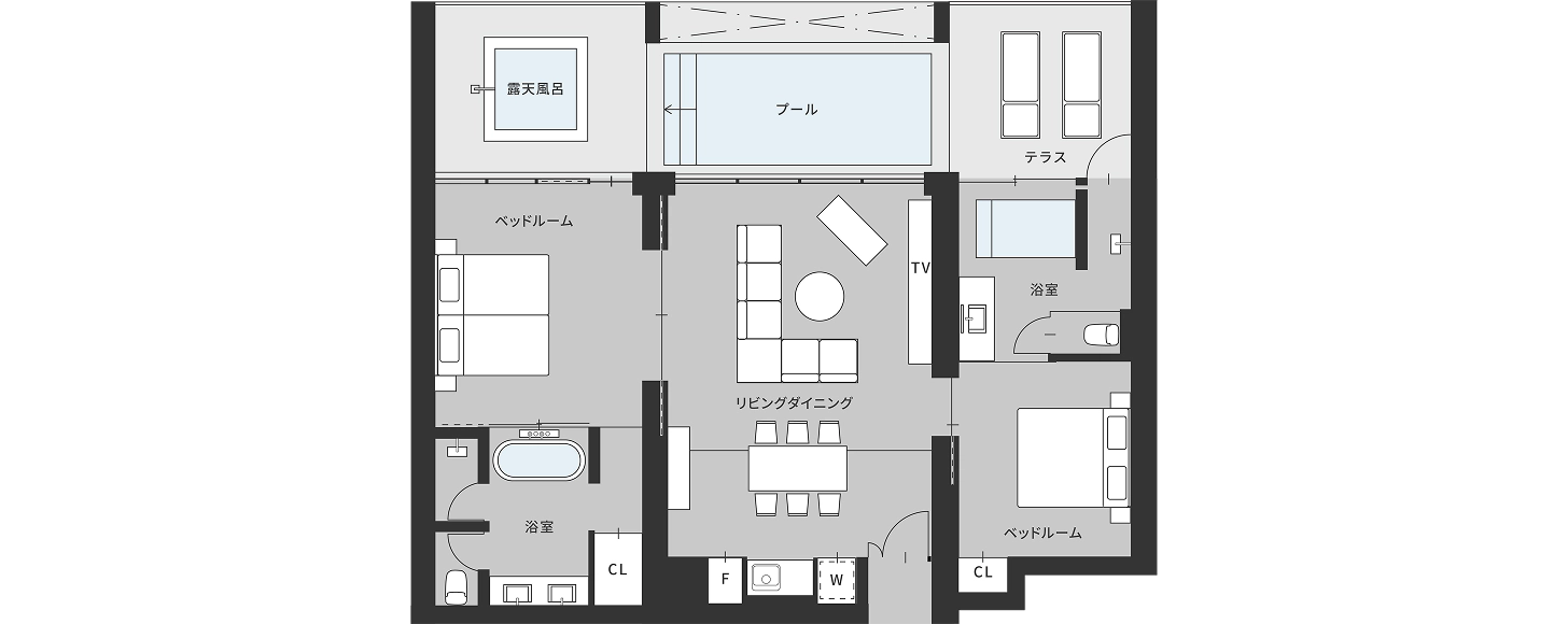 | 99.70㎡+38.40㎡ | 2 Bedrooms | 4名(+2名) |