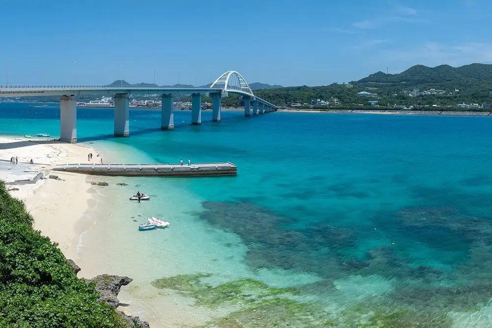 瀬底⼤橋のたもと