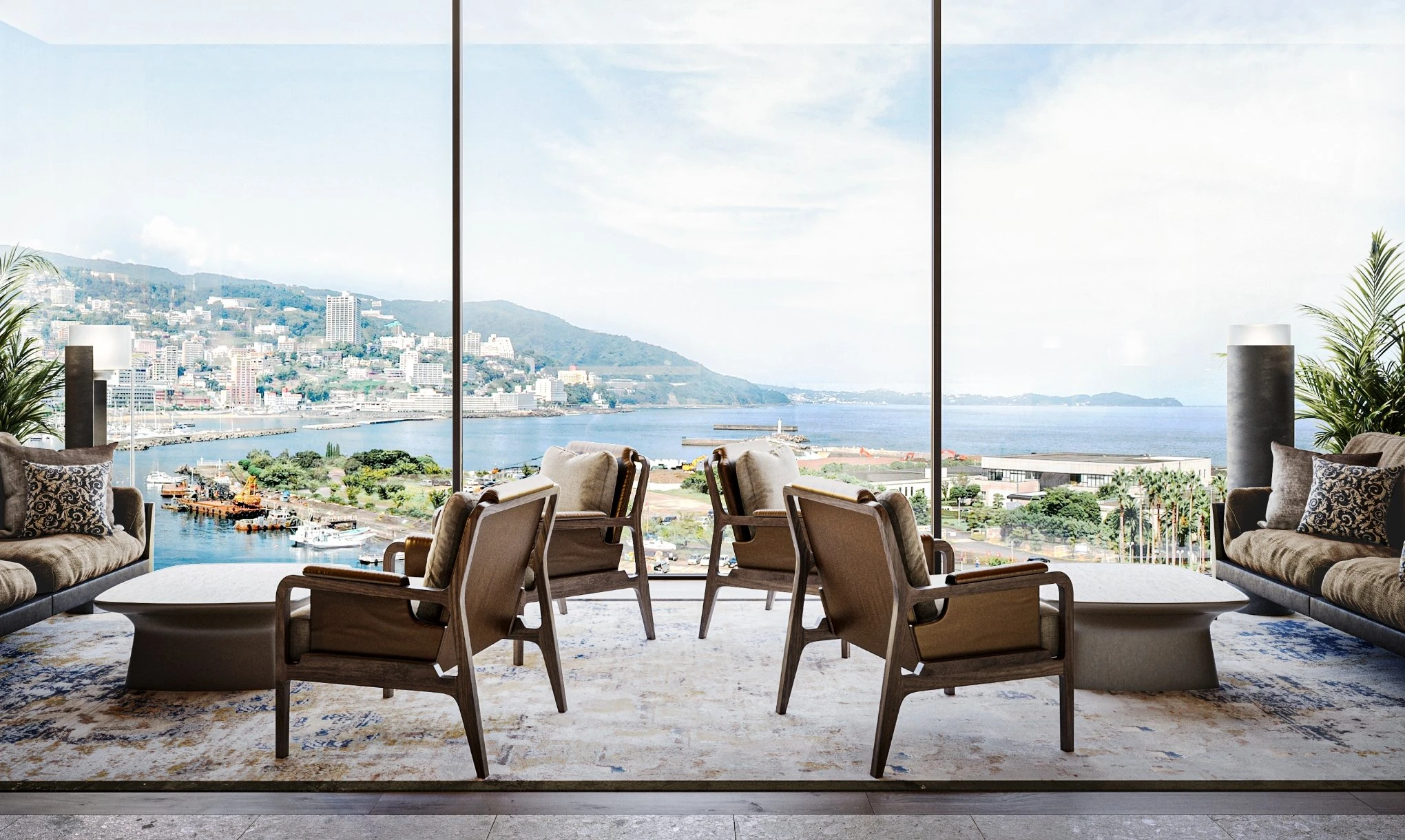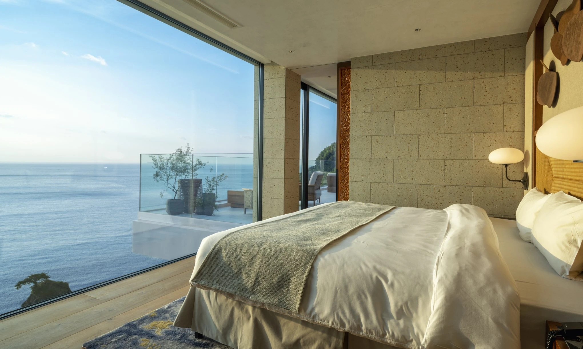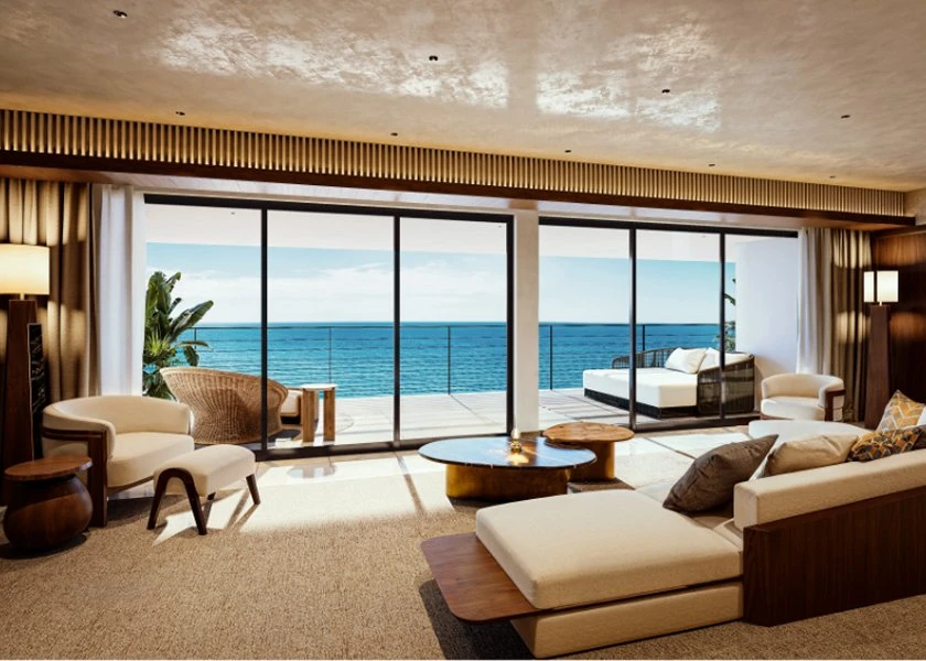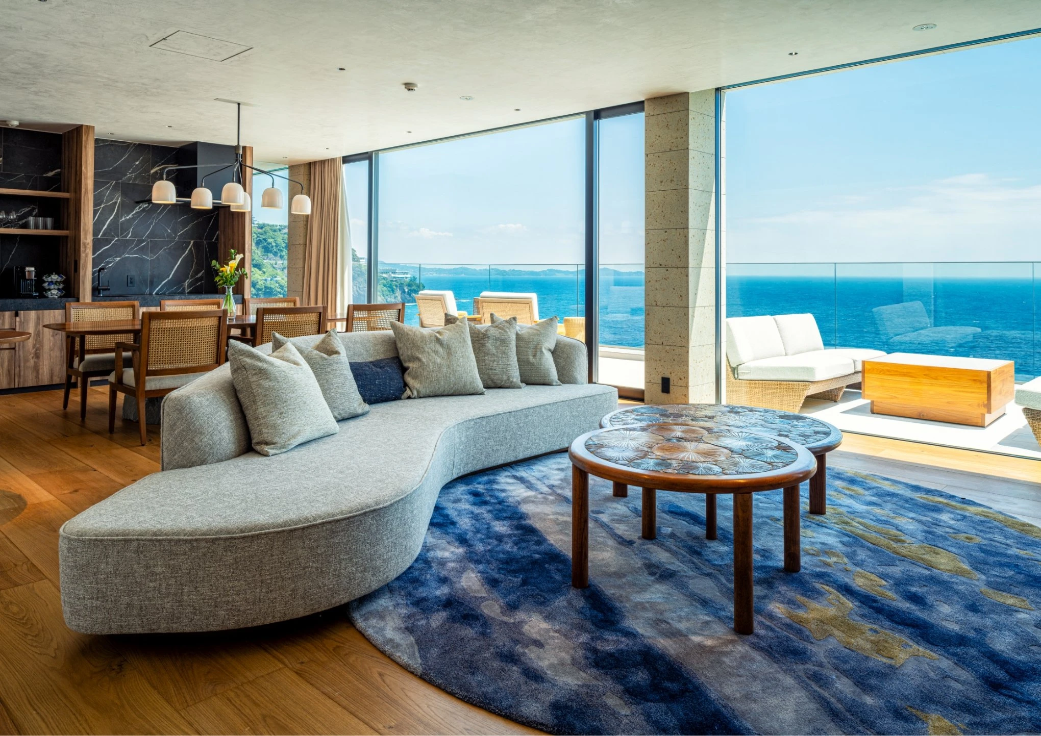 素材本来の質感を活かした空間が遮るもののない絶景とともに、上質な時間を叶える。
