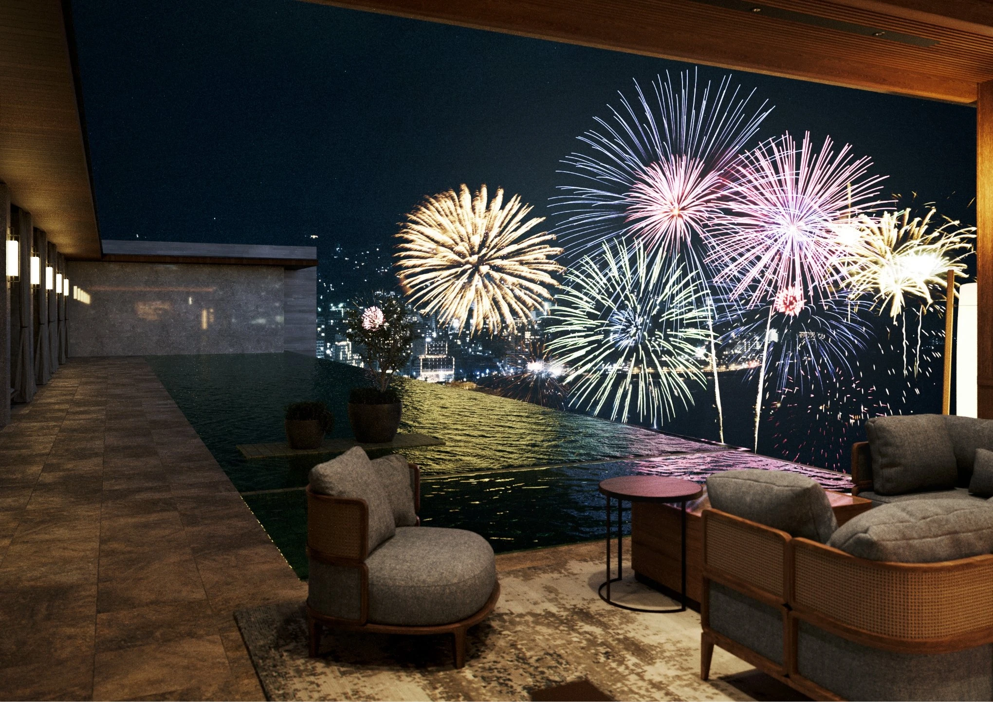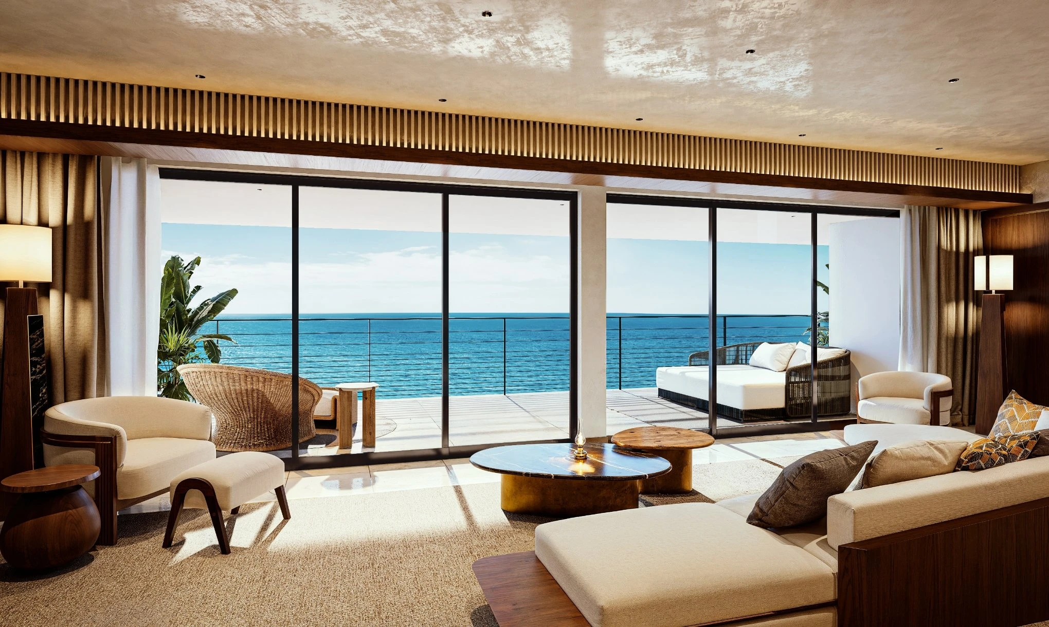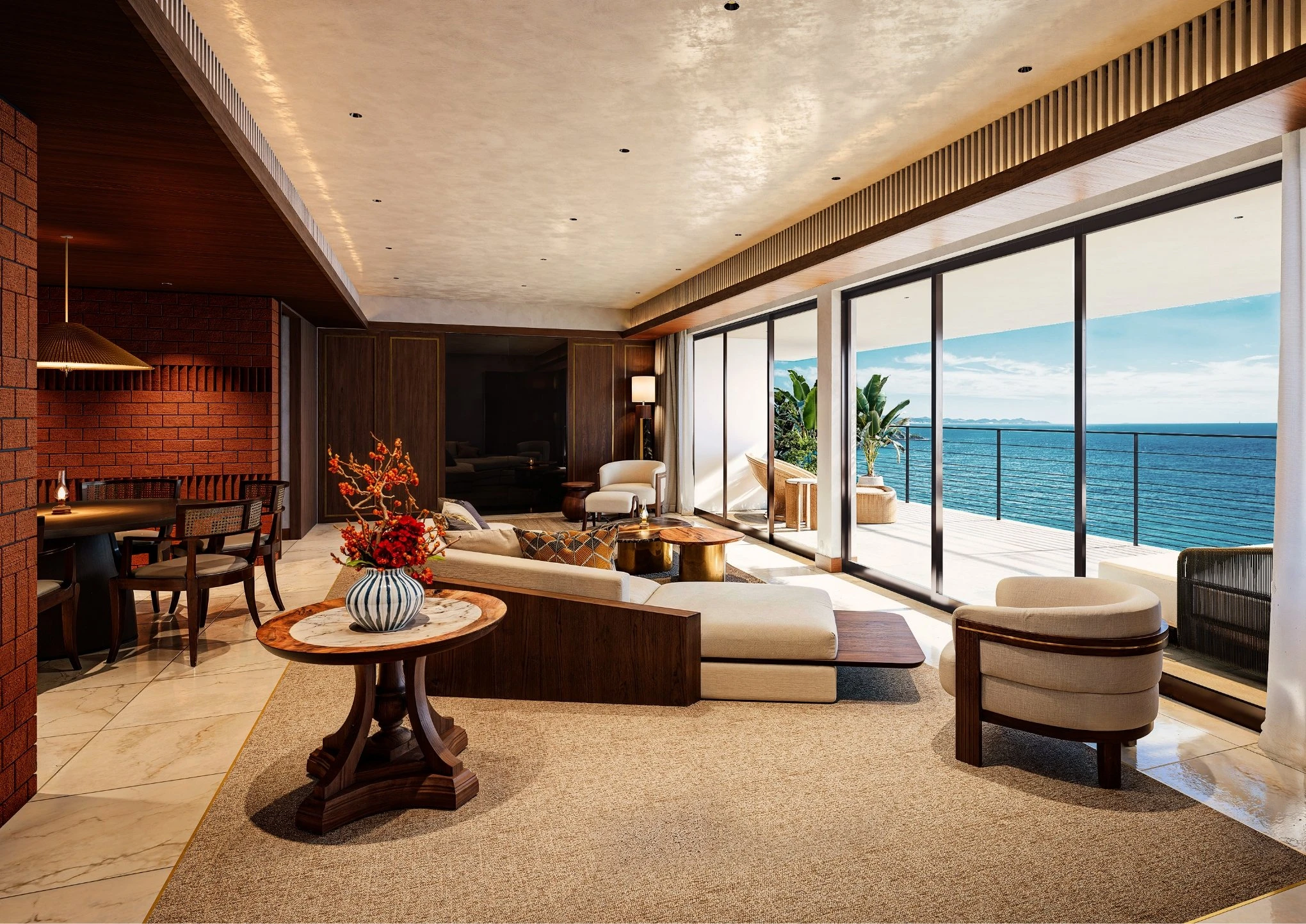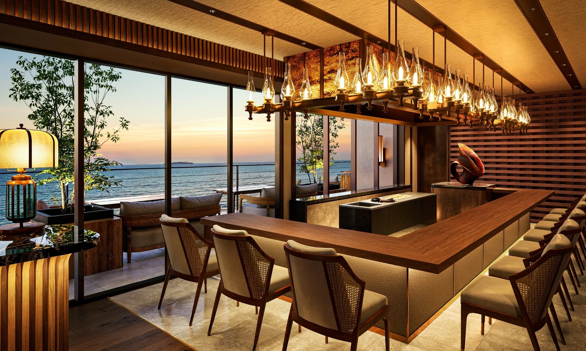 素材本来の質感を活かした空間が遮るもののない絶景とともに、上質な時間を叶える。