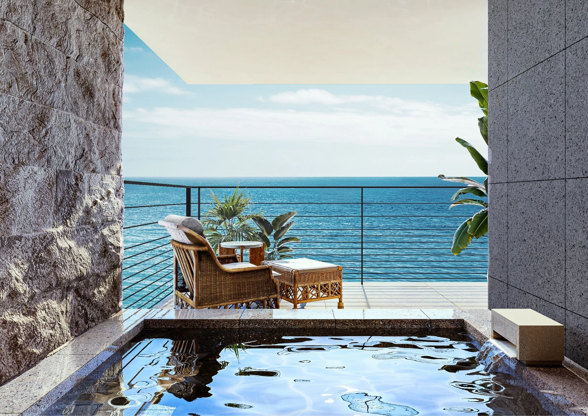 インフィニティープールで寛ぐ隠れ家。