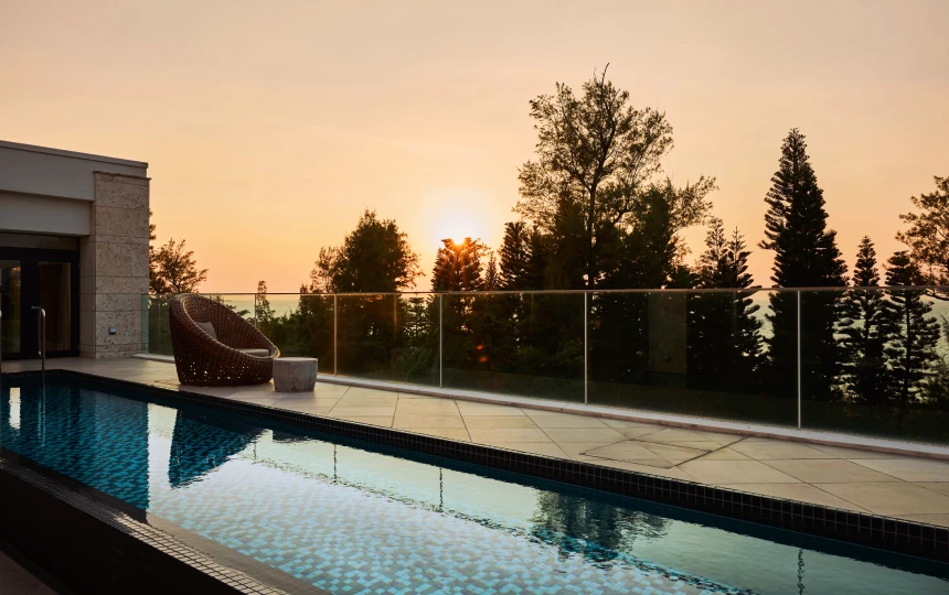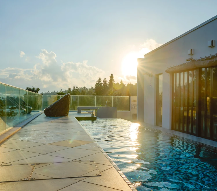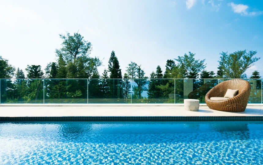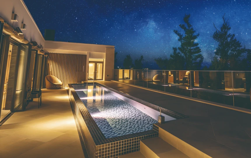 温水仕様のプライベートプールで、