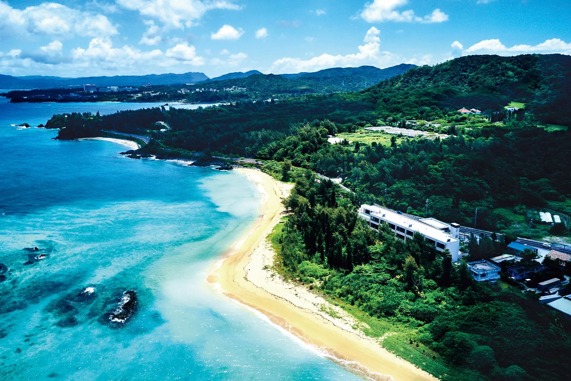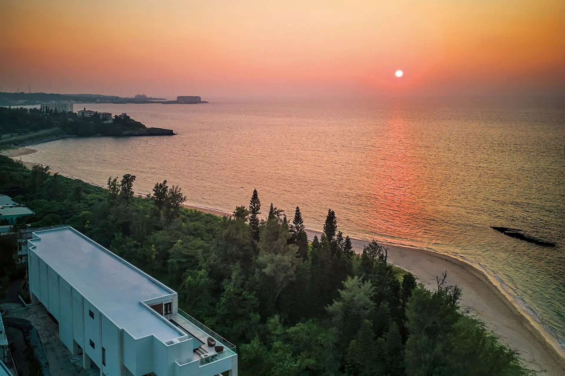 沖縄県恩納村は沖縄でも屈指のリゾート地。地域にリッツカールトンやハレクラニなどラグジュアリーホテルや高級別荘が立ち並ぶエリアであります。UMITO 沖縄 恩納村はその恩納村の熱田ビーチの目の前の最高のロケーション。