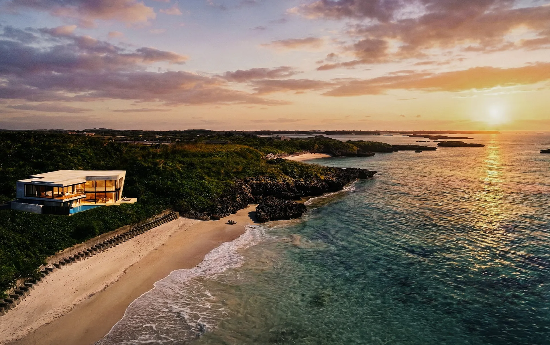 グロットとは、「洞窟上の岩壁」の意味。文字通り崖と海のあいだに沈み込むように佇む建築。そこは、光と水面の揺らぎを抱き込み深い休息のための静かな時間を育む場所